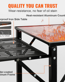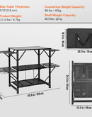 The VEVOR Camping Kitchen Table is built to withstand the rigors of outdoor use. It features a stable and durable frame made of aluminum and iron, ensuring long-lasting performance. The table has a countertop weight capacity of 88lbs/40kg, allowing you to safely place heavy pots, pans, and cooking equipment on it. The side tables have a thickness of 3/10" (0.8cm) and can hold up to 48.5lbs/22kg each.