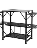 This folding cook station is not just for camping! It's also perfect for outdoor picnics, BBQs, and RV traveling. Whether you're cooking up a storm at a campsite or preparing a meal at a tailgate party, this versatile table has got you covered. It provides a convenient and organized space for all your cooking needs.