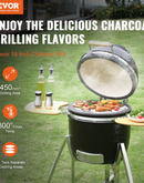 VEVOR 18" Ceramic Barbecue Grill Smoker Portable Round Outdoor Grill for Patio - High-Quality Clay and Stainless Steel Construction, Hinge Design, and Considerate Accessories