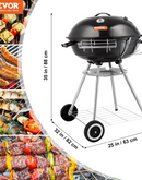 VEVOR 22 inch Kettle Charcoal Grill | Premium BBQ Grill with Wheels and Cover