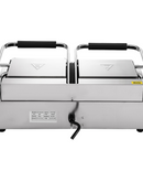- Double flat plates ensure even distribution of heat for perfect grilling