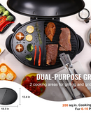 VEVOR Indoor/Outdoor Electric Grill 1800W - 200sq.in Electric BBQ Grill | Zone Grilling Surface, Removable Stand, Adjustable Temperature | for Party Camping Yard