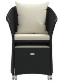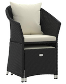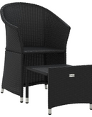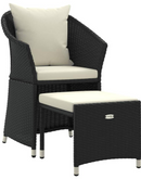 Enhance your garden and terrace with this cozy and stylish patio lounge set. Crafted with exceptional durability, the black poly rattan material is perfect for various weather conditions and requires minimal maintenance. With a sturdy steel frame and thick removable cushions, this set offers the utmost seating comfort for you and your guests. The comfortable armrest and backrest design allow for complete relaxation, while the practical stool adds versatility to your lounging experience. Assembly is made easy with the included manual, and for long-lasting protection, we recommend using a waterproof cover. Make the most out of your outdoor space with our high-quality 2 Piece Patio Lounge Set.