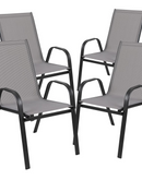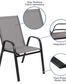 The sling patio chairs are designed for both comfort and durability. Made with breathable gray flex comfort material, these chairs keep you cool during hot summer days. The ergonomic design features curved arms that provide support to the upper body, ensuring hours of comfortable seating.