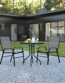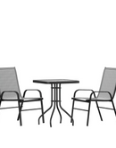 3 Piece Outdoor Patio Dining Set - Square Tempered Glass Patio Table, Gray Flex Comfort Stack Chairs