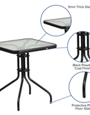 The 23.5" square patio table features a unique rippled look that adds a touch of sophistication to your outdoor space. Despite its designer appearance, the tempered glass table top is smooth to the touch, ensuring that your items stay level.