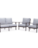 Enhance your outdoor living space with the cozy seating experience provided by the 3-Piece Outdoor Patio Set with Brown Aluminum Frame. This exceptional patio set is designed with two armchairs and one loveseat, offering ample seating space for you and your guests to unwind and enjoy the outdoors.