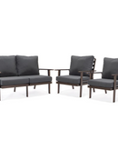 Enhance your outdoor living experience with the exceptional Walbrooke Outdoor Aluminum Patio Set. This 3-piece patio set includes two armchairs and one loveseat, providing a cozy and stylish seating arrangement for your patio or garden.