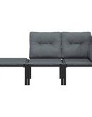 3 Piece Patio Lounge Set Black and Gray Poly Rattan