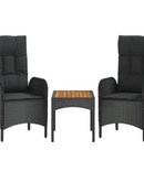 3 Piece Patio Lounge Set with Cushions - Black Poly Rattan | Relax in Style