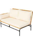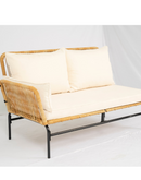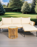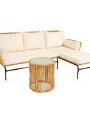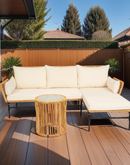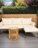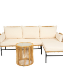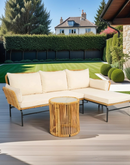 3 Pieces Outdoor Patio Wicker Furniture Sets - Natural Yellow Wicker + Creme Cushion