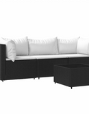 4 Piece Patio Lounge Set with Cushions Black Poly Rattan - Elegant and Contemporary Design