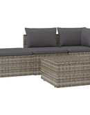 4 Piece Patio Lounge Set with Cushions - Gray Poly Rattan | Outdoor Seating