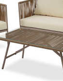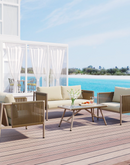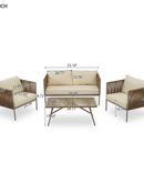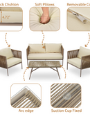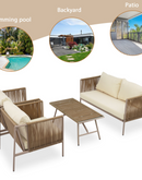 4-Piece Rope Sofa Set with Thick Cushions and Toughened Glass Table - All-Weather Patio Furniture Set For 4 Person With Loveseat, Beige