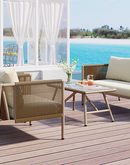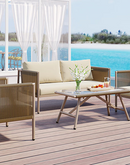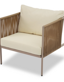 - Rope-style: This outdoor furniture set features metal frames wrapped with weaving rattan into one impressive unity. The tight and elegant hand-woven rattan adds a modern twist to the weather-resistant metal frame.