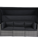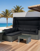 7-Piece Patio Furniture Set w/Retractable Canopy Wicker Rattan Sectional Sofa Set Patio Furniture with Washable Cushions for Lawn, Garden, Backyard, Poolside Grey wicker + Black Cushion