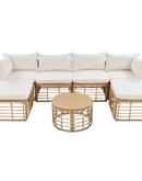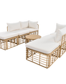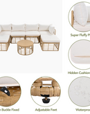 Turn your patio, deck, or garden into a stylish oasis with our versatile and functional Wicker Sofa Set. Whether you're hosting outdoor gatherings or simply unwinding in the sun, this set provides the perfect combination of comfort, durability, and elegance. Designed with a focus on safety and comfort, the adjustable feet ensure stability on any surface, while the horn buckles keep the seat cushions securely in place. The zipper closures on both the seat cushions and pillows make it easy to remove and clean them. With its contemporary design and beige color, this sectional sofa set will enhance the aesthetic appeal of any outdoor setting.