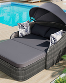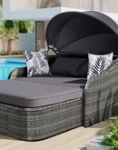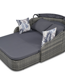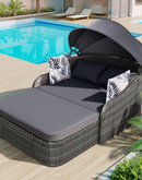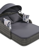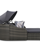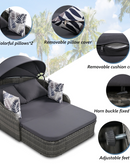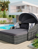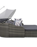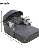 79.9" Outdoor Sunbed with Adjustable Canopy, Double Lounge, PE Rattan Daybed, Gray Wicker and Cushion
