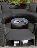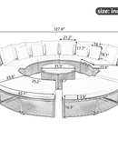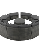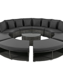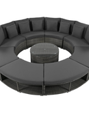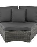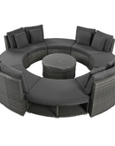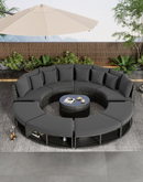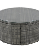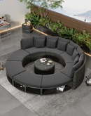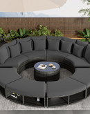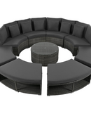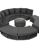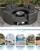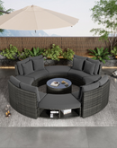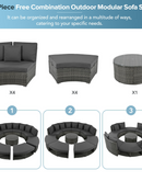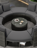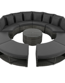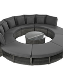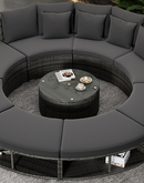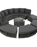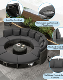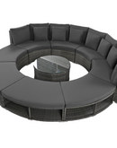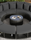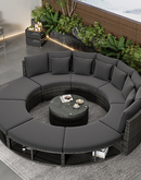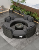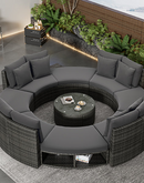 Luxury Circular Outdoor Sofa Set - 9-Piece Rattan Wicker Sectional Sofa Lounge Set with Coffee Table and 6 Pillows, Grey