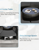 - Robust tempered glass coffee table adds a sophisticated touch