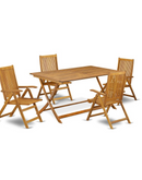 Upgrade your outdoor dining experience with the AECN5C5NA 5 Piece Innovative Patio Dining Set. This stunning set includes a rectangular patio table and four multi-position patio dining chairs, providing ample space for up to 4 people. Crafted with fine Acacia Wood, this dining set offers both durability and longevity. The unique design of the table and folding chairs will instantly enhance the look of your patio area.