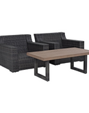 Create an instant oasis with the Beaufort 3Pc Outdoor Wicker Chair Set. This set includes a coffee table and two chairs, perfect for enjoying meals or drinks by the pool or on your balcony.
