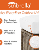 - Sunbrella Cushion Covers: The high-quality Sunbrella fabric covers the thick cushions, providing resistance to staining, discoloration, and mildew.