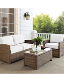 Bradenton 3Pc Outdoor Conversation Set - Sunbrella White/Weathered Brown - Loveseat, Arm Chair, & Coffee Table