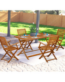 This patio dining set is designed with convenience in mind. The folding function allows for easy storage when the set is not in use, making it perfect for small outdoor spaces. Simply fold up the chairs and store them away until your next outdoor gathering. The sturdy wood structure retains its looks and beauty throughout the seasons, ensuring years of enjoyment.