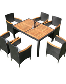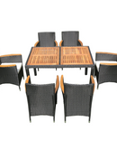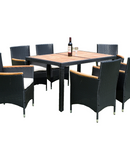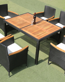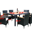 EELIFEE 7-Piece Patio Wicker Dining Set with Acacia Wood Top - Rustproof Metal Frame, Water Repellent Cushion Covers, Easy Maintenance
