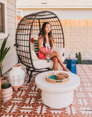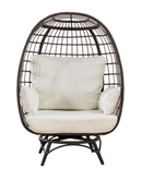 Introducing the Egg Cuddle Chair Wicker Swivel Lounge Chair. Enhance your outdoor living space with this statement piece from Sunjoy, the world's leading outdoor structure maker. The Egg Cuddle Chair is designed for ultimate comfort and maximum style. Whether you want to snuggle up with a book or enjoy a podcast, this modern egg chair is the perfect spot. Key Features: - Cozy egg shape for maximum comfort - Delicately open-wrapped design for an eye-catching modern look - Swivel function for easy navigation and perfect positioning - All-weather wicker construction on a durable steel frame - Weather-resistant white cushions for added comfort. Multiple Scenery Application: With dimensions of 40.16"L x 34.06"W x 58.07"H and a weight of 35.27 lbs, this brown egg chair is a perfect addition to various outdoor and indoor living spaces. Whether you have a patio, deck, backyard, or lawn, this chair will perfectly complement your environment. Easy Assembly: This swivel egg chair is incredibly easy to set up. It comes with illustrated assembly instructions, and our experienced customer service team is ready to assist you with any questions that may arise. Upgrade your Outdoor Space: Add a touch of sophistication and style to your backyard with the Egg Cuddle Chair. Its distinct shape allows it to stand out in smaller spaces or blend into a larger lounge setting. The modern design, combined with the all-weather wicker and durable steel frame, ensures this chair will withstand the seasons and provide you with years of comfort and enjoyment.