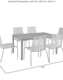 Upgrade your outdoor dining experience with the Fenton 7Pc Outdoor Wicker/ Metal Dining Set. This sleek and stylish set includes six armless chairs and a rectangular dining table, providing ample eating space for family and friends. Crafted with durability and style in mind, this dining set is perfect for enjoying meals in the great outdoors.