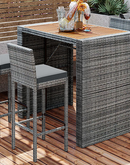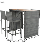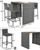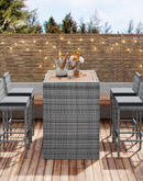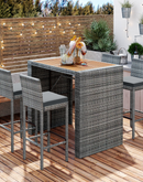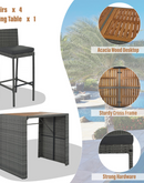 GO 5-Piece Outdoor Patio Wicker Bar Set | Bar Height Chairs, Non-Slip Feet, Removable Cushions, Acacia Wood Table Top | Brown Wood