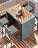 Transform your patio into a stylish and comfortable entertainment area with the GO 5-Piece Outdoor Patio Wicker Bar Set. This set includes 4 bar height chairs and a beautiful table, all designed with durability and comfort in mind.