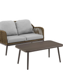 Create a stylish and inviting outdoor space with the Haven 2Pc Outdoor Wicker Conversation Set. This conversation set combines modern metal elements with a touch of boho chic to deliver an on-trend look that will enhance any patio or garden. Made with handwoven synthetic twine that beautifully mimics the appearance of natural rope, this set exudes both elegance and durability. The weather-resistant powder-coated steel frame ensures long-lasting performance, while the light brown synthetic rope adds a touch of warmth and sophistication.