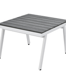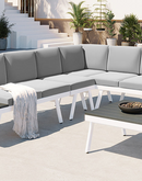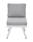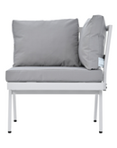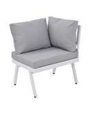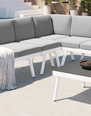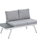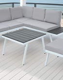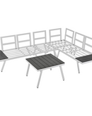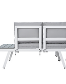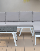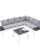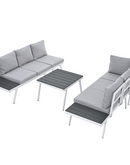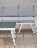 Industrial 5-Piece Aluminum Outdoor Patio Furniture Set, Modern Garden Sectional Sofa Set with End Tables, Coffee Table and Furniture Clips for Backyard, White+Grey