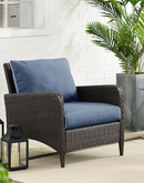 Kiawah Outdoor Wicker Armchair Blue/Brown - Comfortable and Stylish Patio Furniture