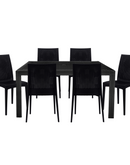 - 7-piece modern patio dining set: Includes 6 stackable dining chairs and a rectangular table