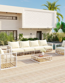 Modern Minimalist 7-Piece Metal Patio Sectional Sofa Set, All-Weather Garden Conversational Furniture Set with Thick Cushions and Coffee Table for Indoor Outdoor, White