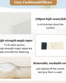 - [Cozy Cushions&Pillows] Our garden sectional sofa will be your outdoor oasis, built tough, but feeling like a soft hug. With our 6 cushions and 8 fluffy pillows, it will promise cloud-like comfort, rain or shine, thanks to their water-resistant ability and 220gsm high-count fabric. Removable, washable covers mean keeping your furniture set is as simple as a summer breeze, just zipping off the covers and give them a wash.