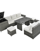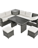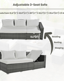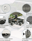 - All-Weather & Hand-Woven PE Rattan: Our sofa set is hand-woven with high-quality PE rattan, ensuring durability and resistance to rain, sun, and wind. The intricate weaving adds a touch of craftsmanship to each piece, making it unique and of high quality.