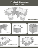 - Dimensions: Loveseat - 53.5x27.6x28.7inch, 3-Seat Sofa - 75.6x27.6x28.7inch, Stool - 16.1x16.1x17inch, Table - 46.5x27.6x26inch, Storage Box - 27.6x27.6x28.7inch. Please refer to the size image for more detailed measurements.