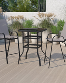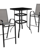 Outdoor Dining Set - 2-Person Bistro Set | Glass Bar Table with Gray All-Weather Patio Stools