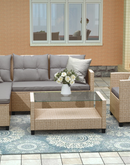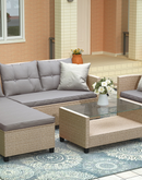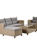 Outdoor Patio Furniture Sets, 4 Piece Conversation Set Wicker Ratten Sectional Sofa with Seat Cushions