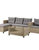 - Complete 4-piece outdoor patio set with a 2 seater sofa, lounge sofa, coffee table, and sofa chair