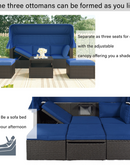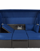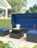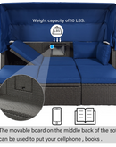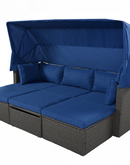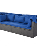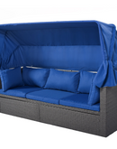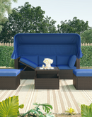 Outdoor Patio Rectangle Daybed with Retractable Canopy, Wicker Furniture Sectional Seating with Washable Cushions, Backyard, Porch