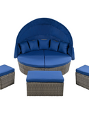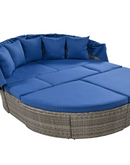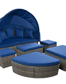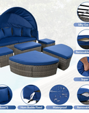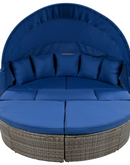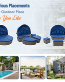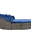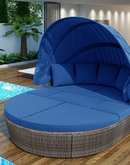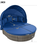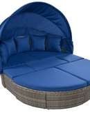 Outdoor Rattan Daybed Sunbed with Retractable Canopy - Blue