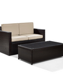 Palm Harbor 2Pc Outdoor Wicker Conversation Set Sand/Brown - Loveseat & Coffee Table