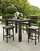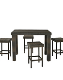 Transform your outdoor space into a luxurious retreat with the Palm Harbor 5Pc Outdoor Wicker Counter Height Dining Set. Crafted with all-weather wicker and durable steel frames, this set combines durability with timeless elegance. Whether you're enjoying a leisurely brunch or hosting a dinner party, this dining set is the perfect addition to any patio or deck. The high-quality materials and expert craftsmanship ensure that this set will withstand the elements while maintaining its beauty for years to come. **Key Features:** - All-weather flat resin wicker with rattan look - Weather-resistant powder-coated steel frame - Handwoven brown resin wicker - Backless woven wicker seats - Crossbar supports double as footrests - Adjustable levelers on legs **Table Dimensions:** - Height: 35.4" - Width: 47.8" - Depth: 29.9" **Stool Dimensions:** - Height: 25" - Width: 14.9" - Depth: 14.9" Enhance your outdoor dining experience with the Palm Harbor 5Pc Outdoor Wicker Counter Height Dining Set. Create lasting memories and enjoy luxurious comfort with this beautiful and functional set. Order now and transform your patio into a stylish oasis of relaxation and entertainment.