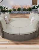 Patio 5-Piece Round Rattan Sectional Sofa Set All-Weather PE Wicker Sunbed Daybed with Round Liftable Table and Washable Cushions for Outdoor Backyard Poolside, Gray
